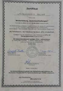 Выдан: Московский Гештальт Институт (2012 г.) - Системные семейные расстановки